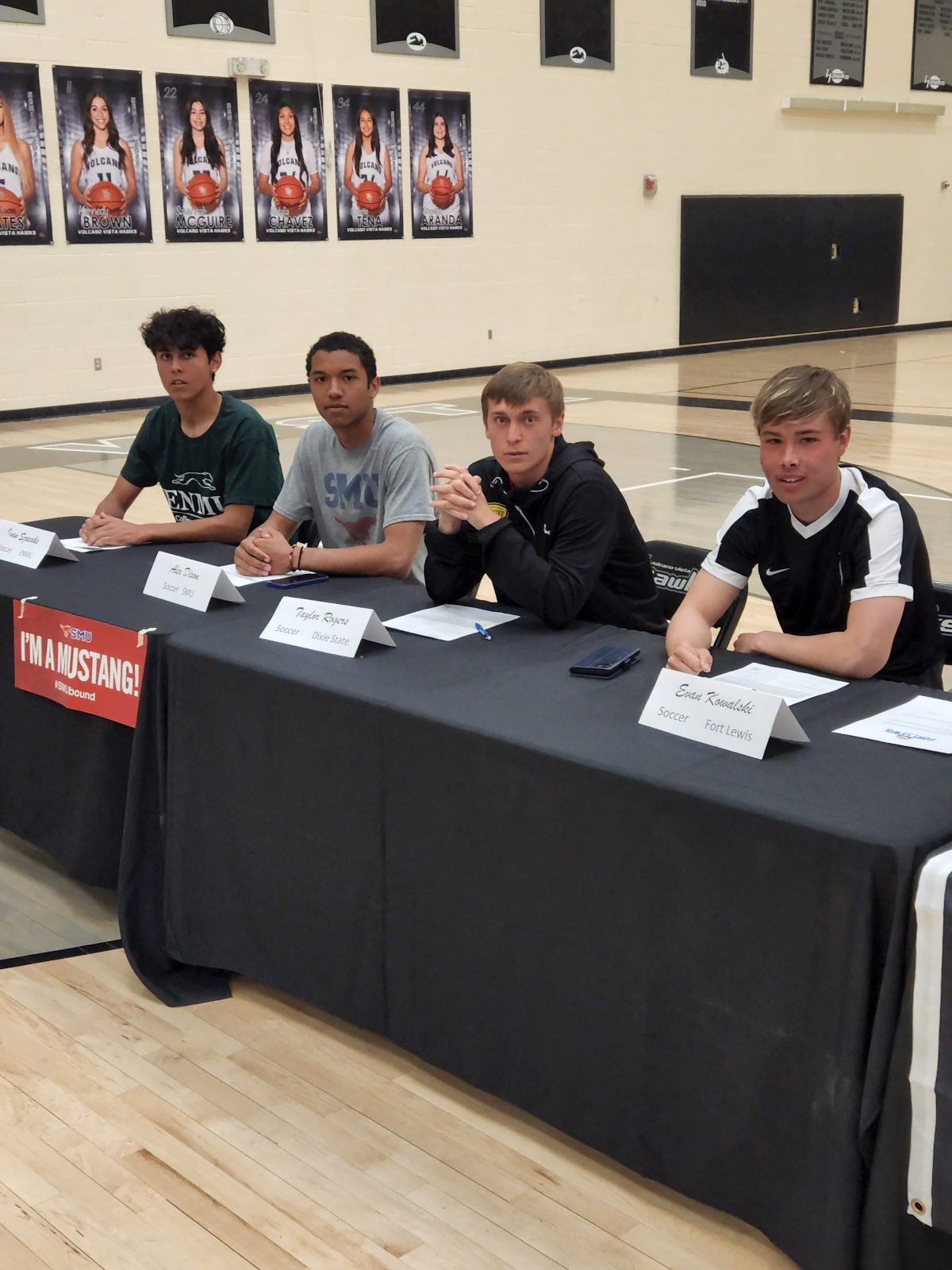 Parents beamed with pride as Volcano Vista senior and public address announcer Carlos Tenorio introduced each athlete and Athletic Director Ron McMath congratulated the students on signing with their respective colleges.
