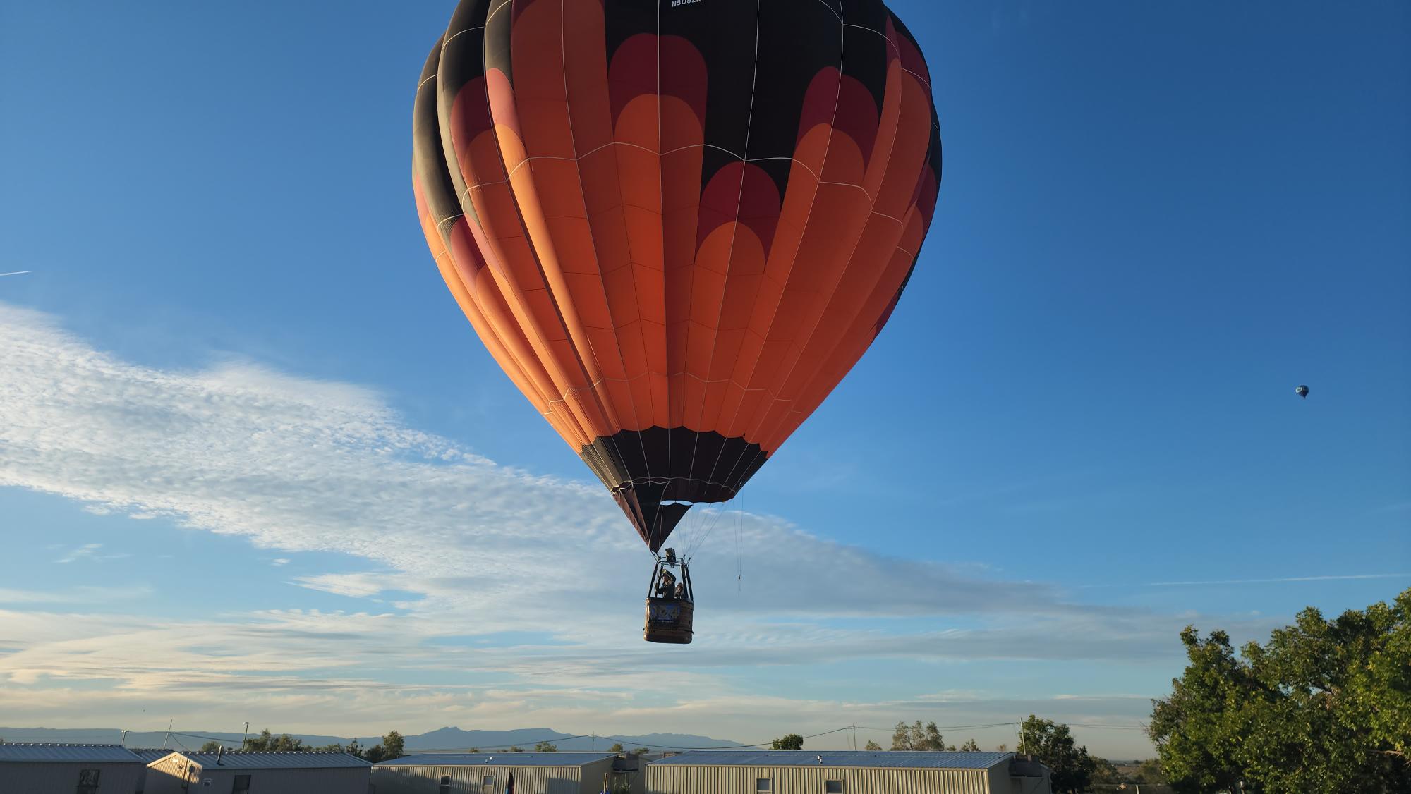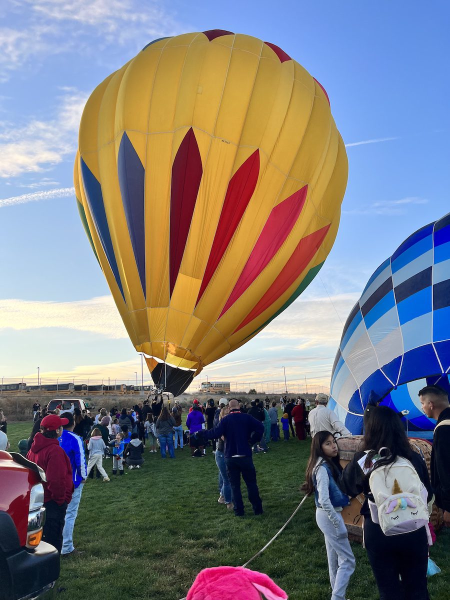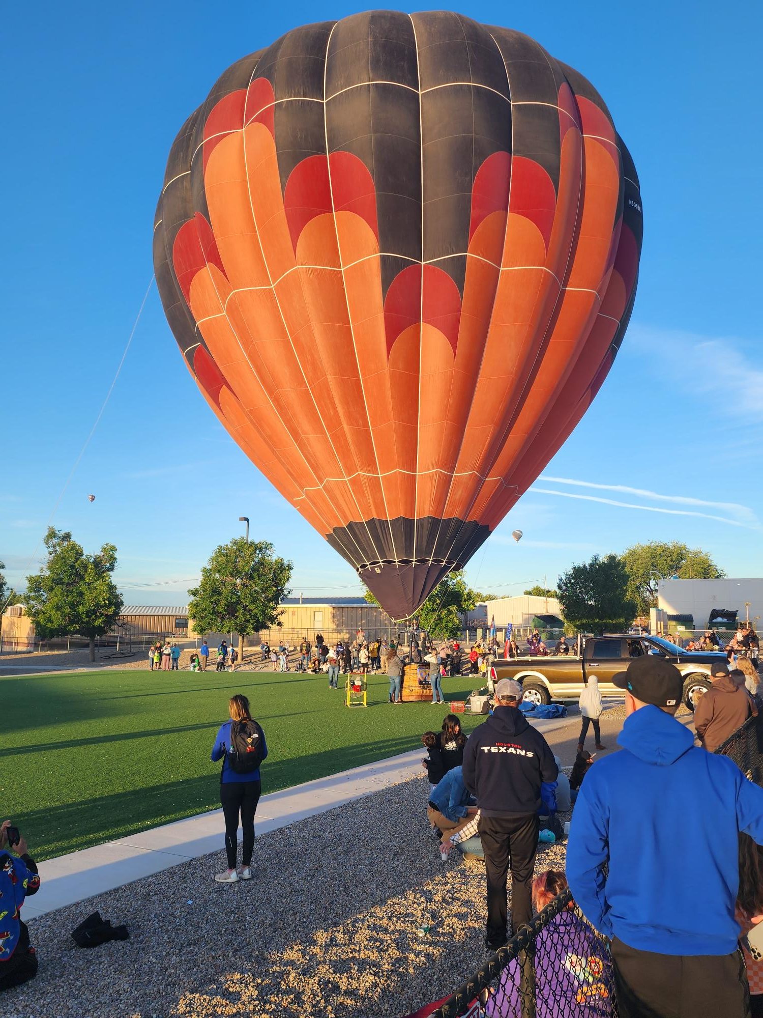 Veteran pilot Carol LaRotonda, who has been flying balloons for 25 years, brought “Aerotonda” to Petroglyph Elementary School to inflate and put on a show for the students, parents and faculty before school.