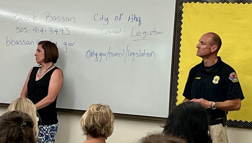 Throughout the two-hour meeting both Albuquerque Police Department’s Northeast Area Commander Greg Weber and Bassan continued to answer questions about safe outdoor spaces. “If we can get to somewhere where we can say this area, you’re good to set up a tent. This area over here is also public domain, you’re not okay to set up,” Weber said. “That’s what the city has to get to.”