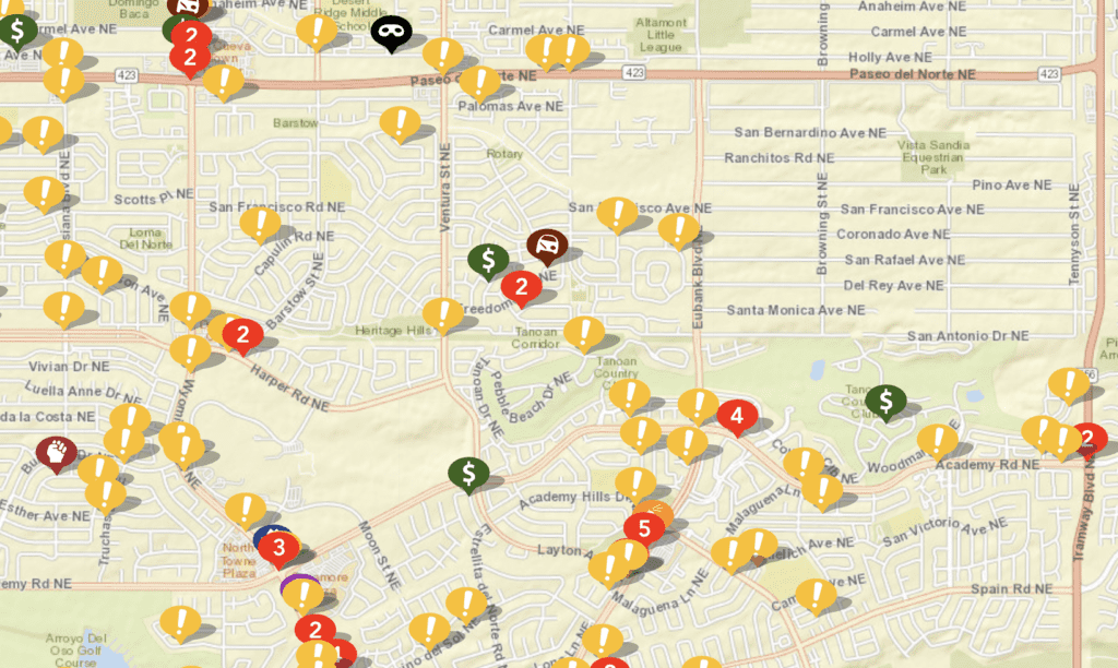 The following incidents were reported by the Albuquerque Police Department for the week of Sept. 30 to Oct. 6 in the far Northeast Heights area between Paseo del Norte Boulevard, Louisiana Boulevard, Eubank Boulevard and Academy Road. There were 36 incidents reported by APD on crimemapping.com for the week. The following 21 incidents do not include traffic stops, direct traffic, onsite traffic or vehicle accidents without injuries.