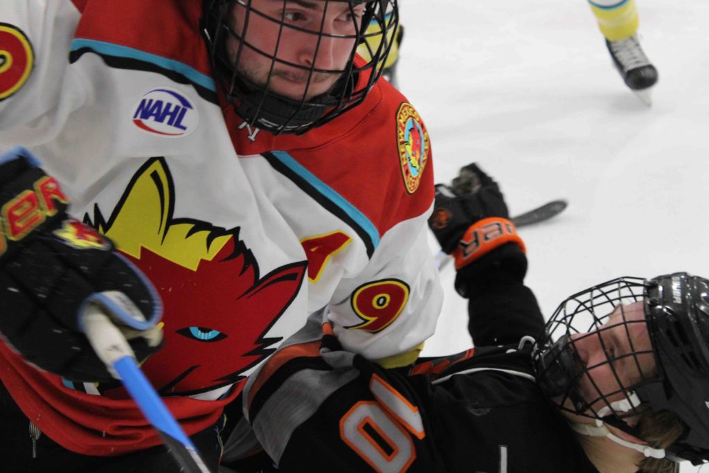 Forward Tyler Samodral and defender Jack Dalton scored the other two goals for the Ice Wolves, giving them a two-point lead in the third quarter.