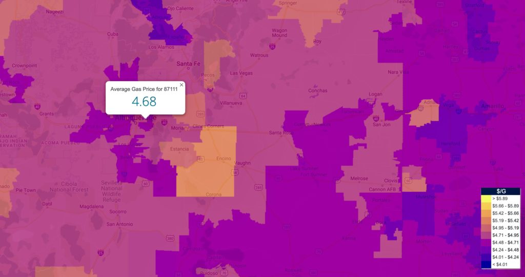 It looks like gas prices have started to drop, at least in the 87111 zip code, at $4.68 per gallon as of Wednesday, with Albuquerque dropping to $4.72 overall.