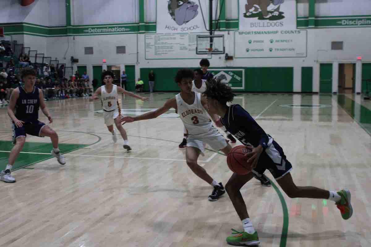 La Cueva’s boys varsity basketball team got the win against Eldorado on Friday, walking away with a 59-56 victory.
