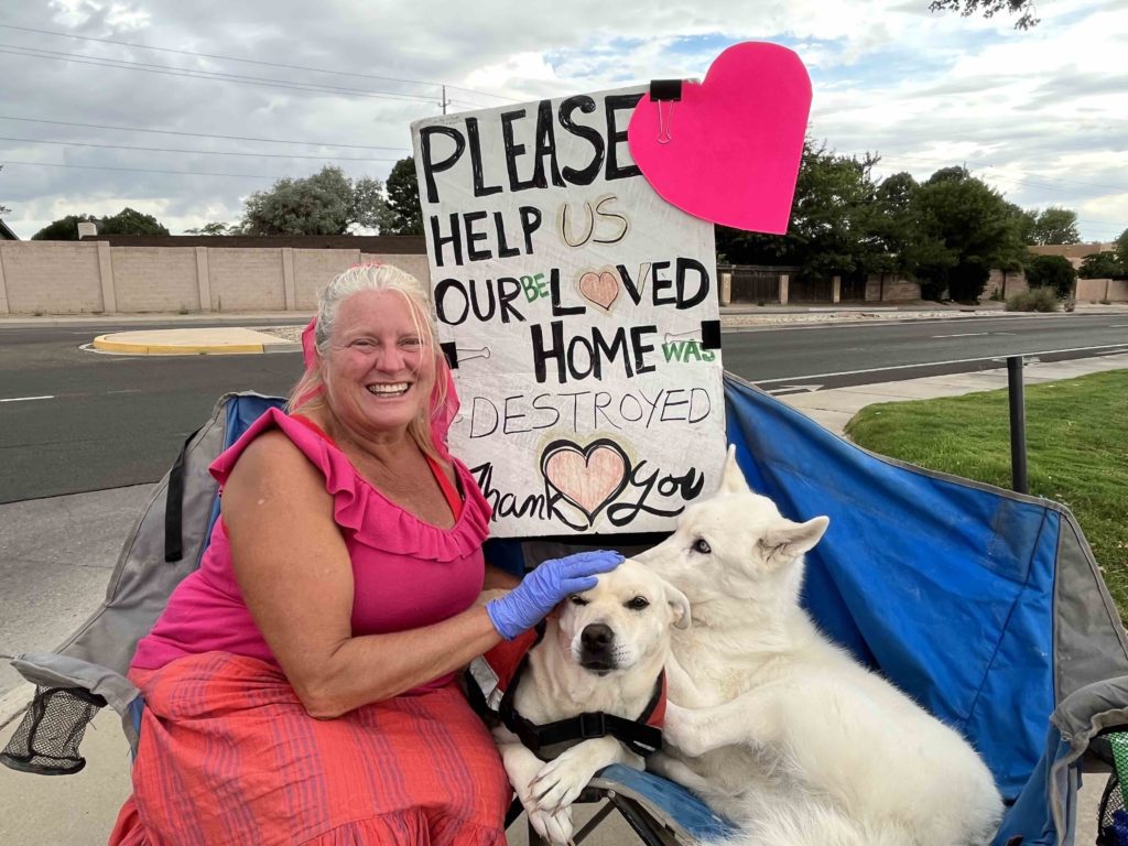 Tambourine and her two dogs have been living out of a vehicle since 2006 after losing her home in Santa Fe. According to Tambourine, the home was destroyed after being sprayed with chemicals. “On July 20, 2006, I came home and almost died because Terminix had gone to the wrong address. And they had not only treated the wrong house, they treated my bees and everything I had in my organic garden,” Tambourine said.